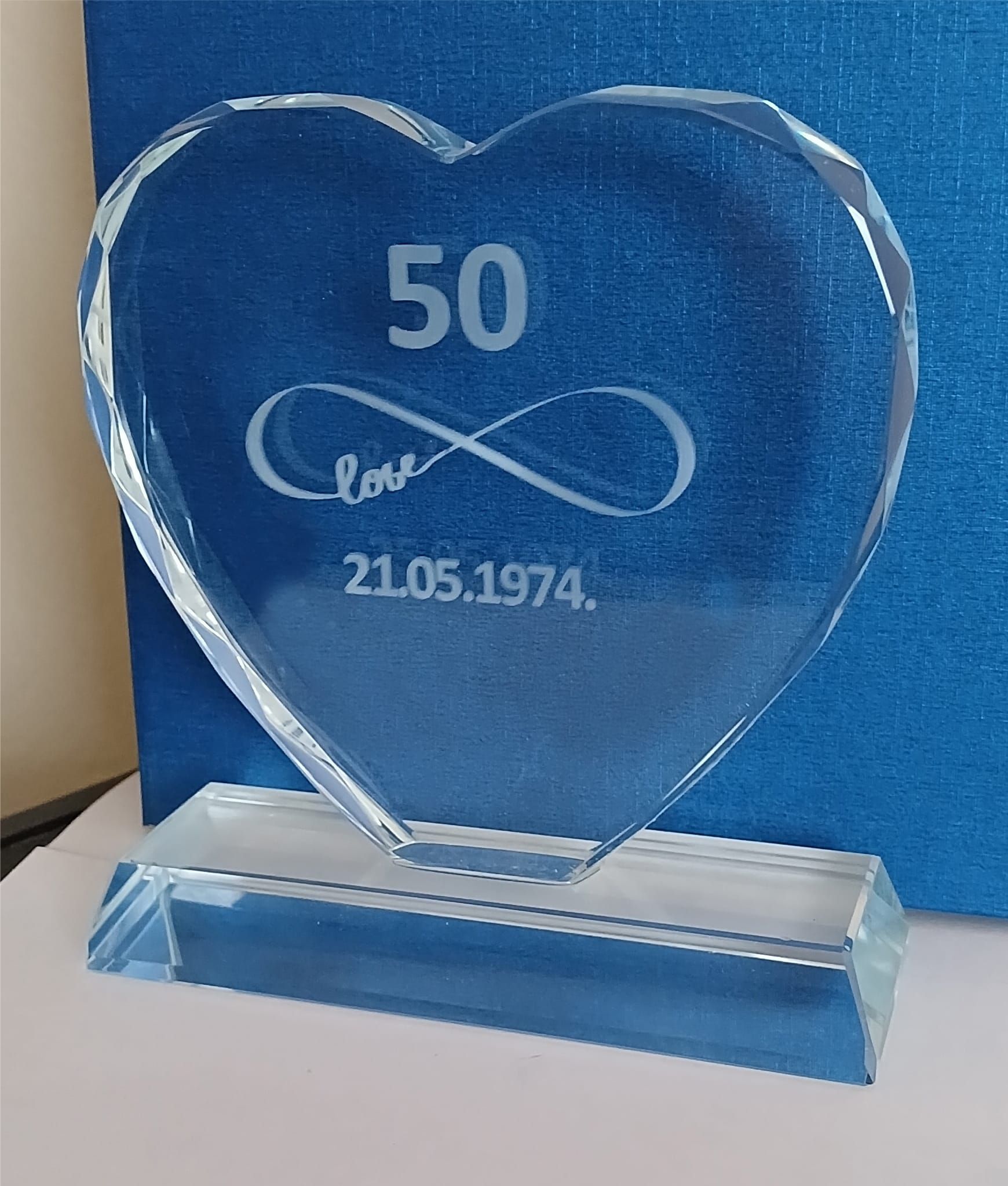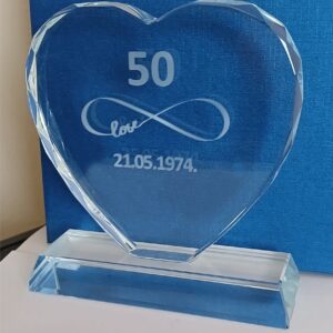 Elektronska priprema, graviranje unutar kristala, odgovarajuća poklon kutija plave boje sa postavom.