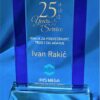 Elektronska priprema, graviranje unutar kristala, štampa UV kolor na površini kristala, odgovarajuća poklon kutija plave boje sa postavom.